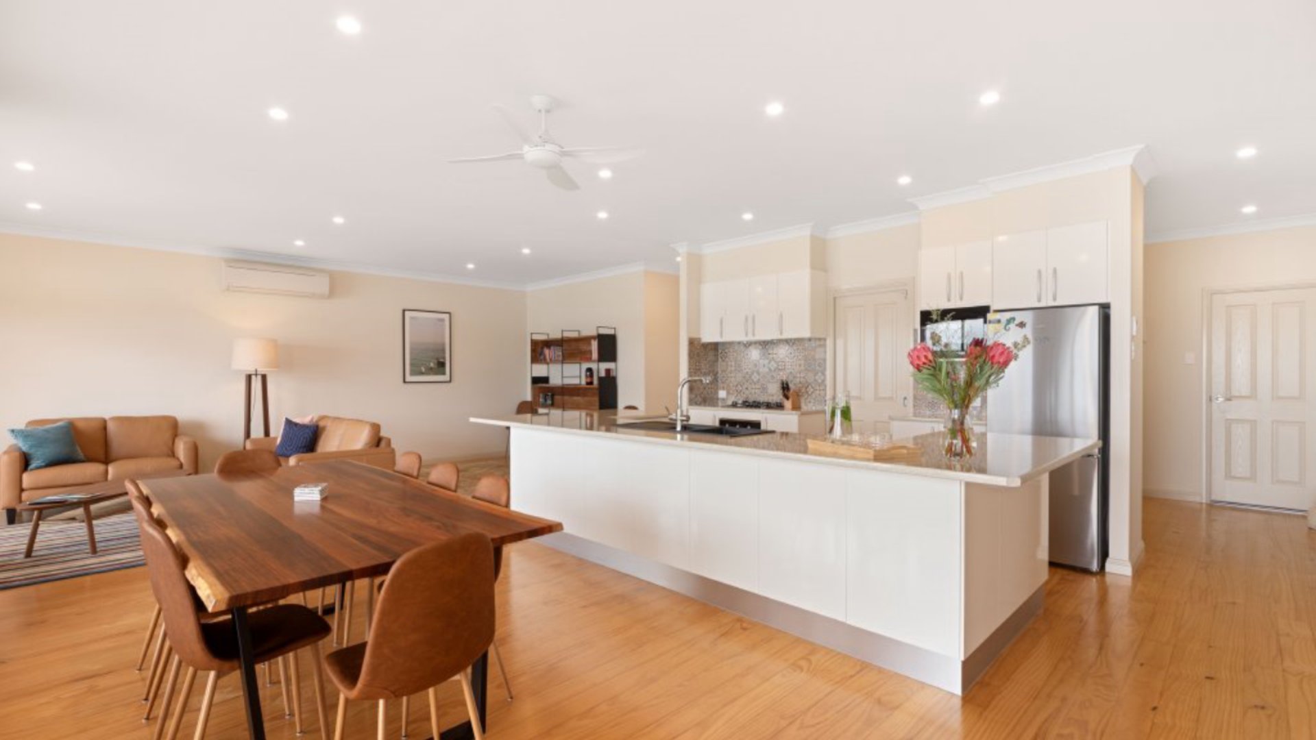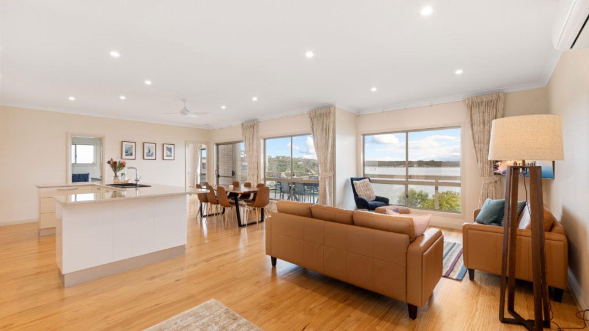 Inside, the home is light-filled and contemporary, designed to maximise those breathtaking water views. Large windows bring the outdoors in, while the open-plan living area offers the perfect place to unwind after a day exploring Coffin Bay National Park, kayaking the calm waters, or sampling world-famous oysters.