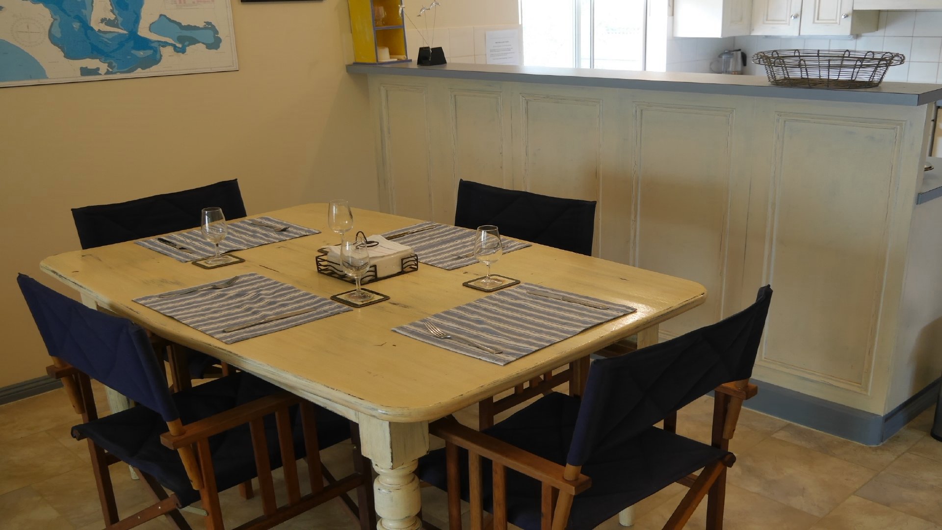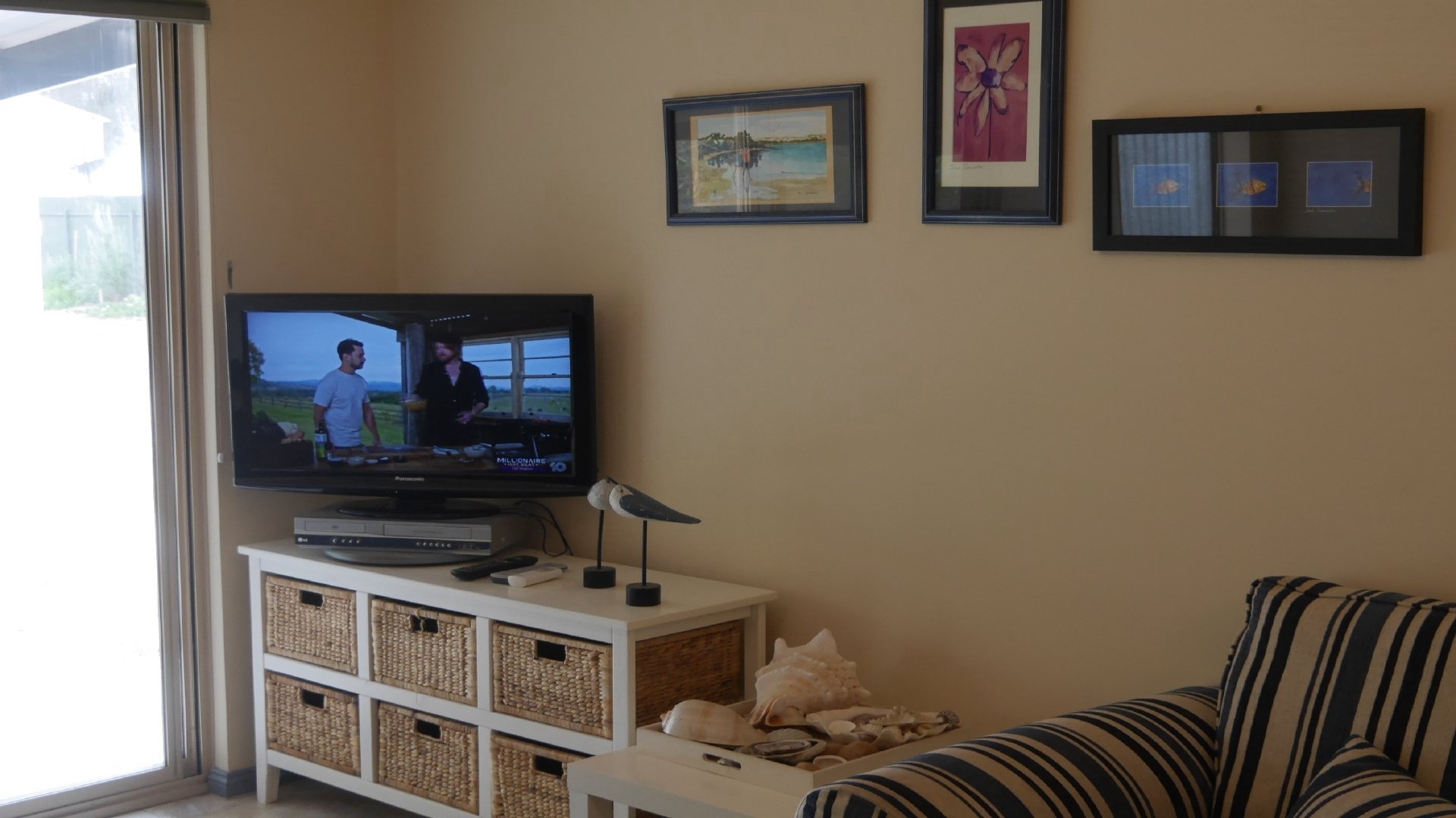 It has airconditioning, BBQ, microwave oven, electric oven, TV and Wi-Fi. Plenty of room to park your car and boat, and it's not far from the boat ramp. Great sheltered fish cleaning facilities too.