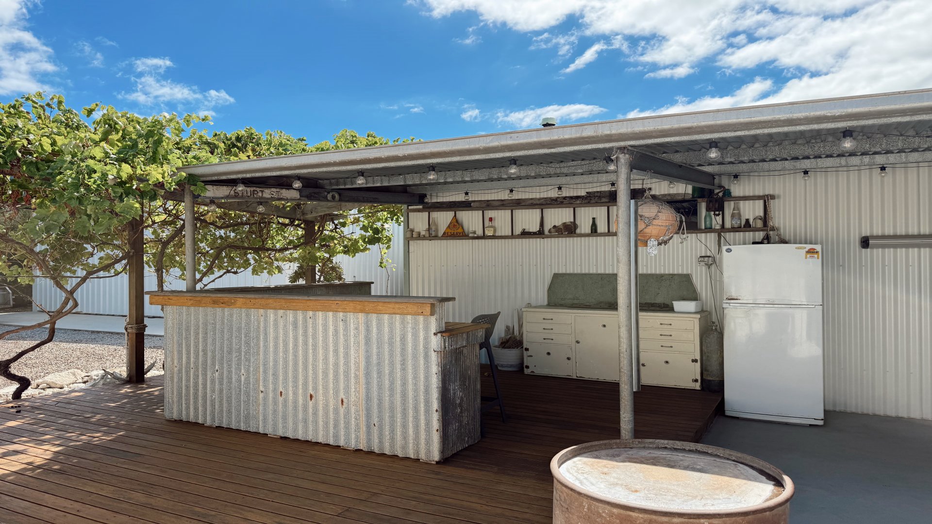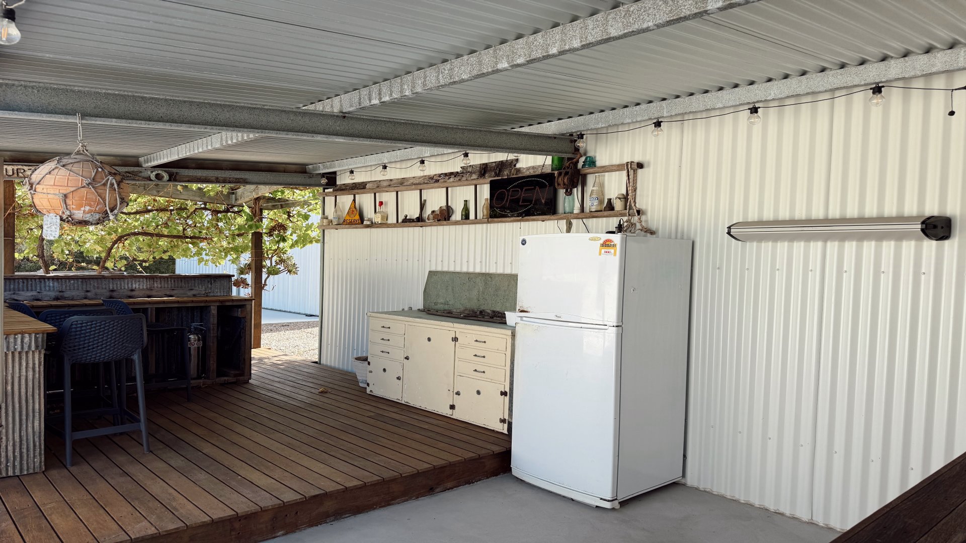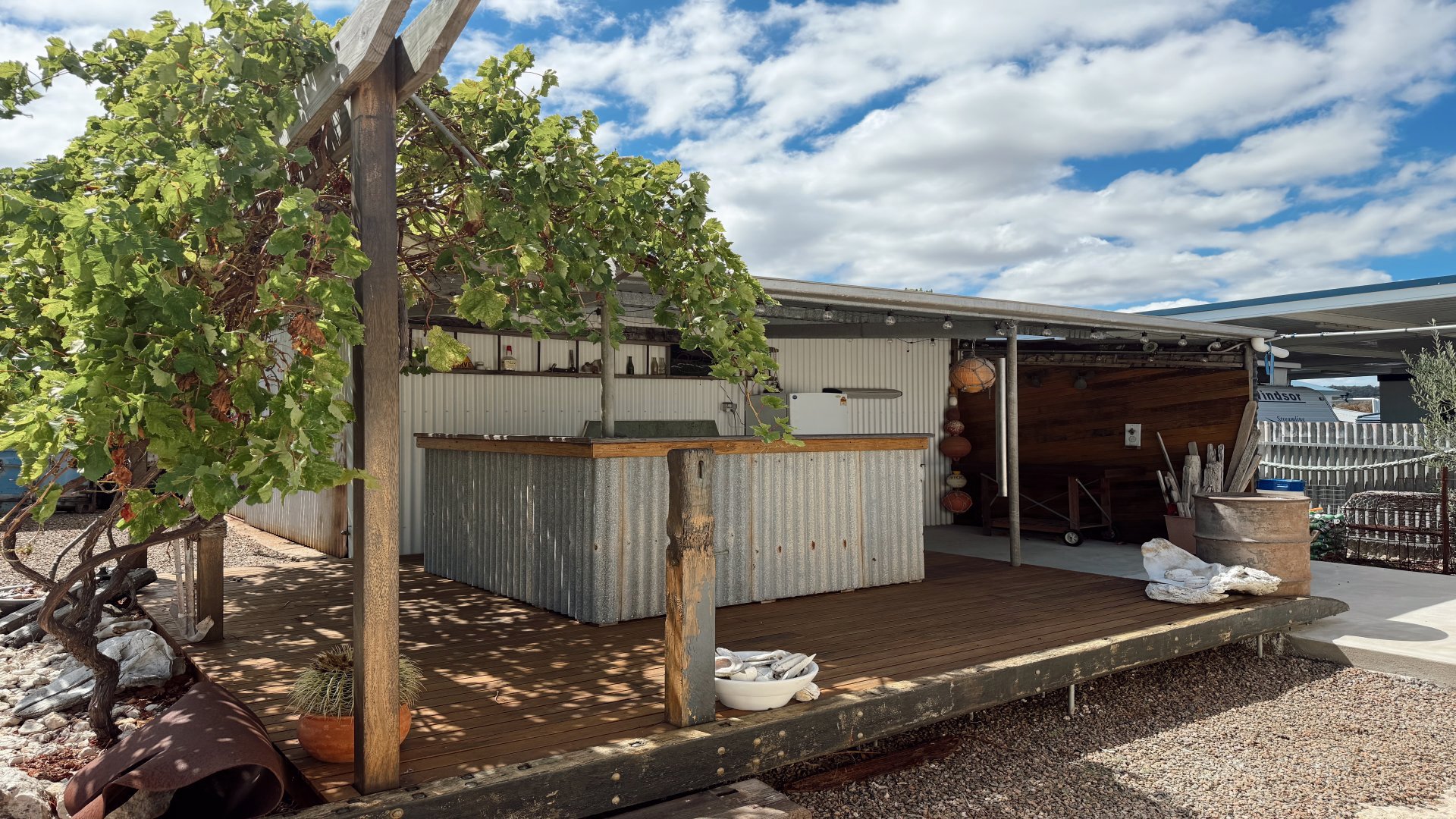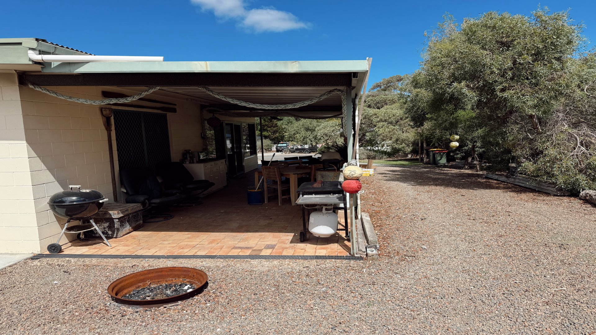 Outdoors provides the entertainer's dream. Multiple entertaining areas invite you to relax and unwind, with a vine-covered deck and bar, creating the perfect setting for afternoon drinks and easy tunes. A nearby fridge keeps refreshments close at hand, while the fire pit is perfect for cooler evenings under the stars. For fishing enthusiasts, a unique fish cleaning station, three BBQ's and ample boat parking, make this an ideal base for your next fishing adventure.